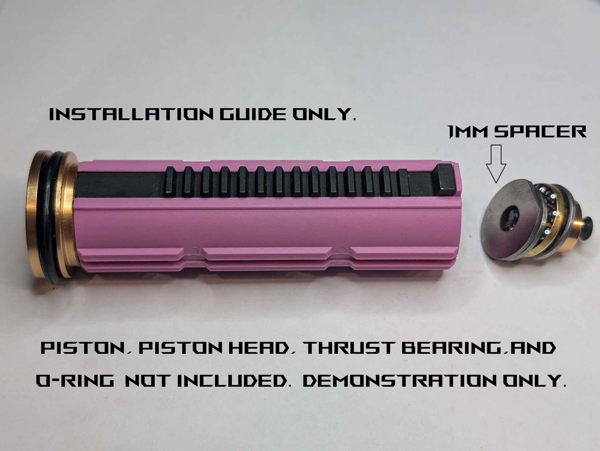 1.0mm spacer to fit between the thrust bearing and piston, to compress the spring/add spring tension, and add mass to the piston assembly.